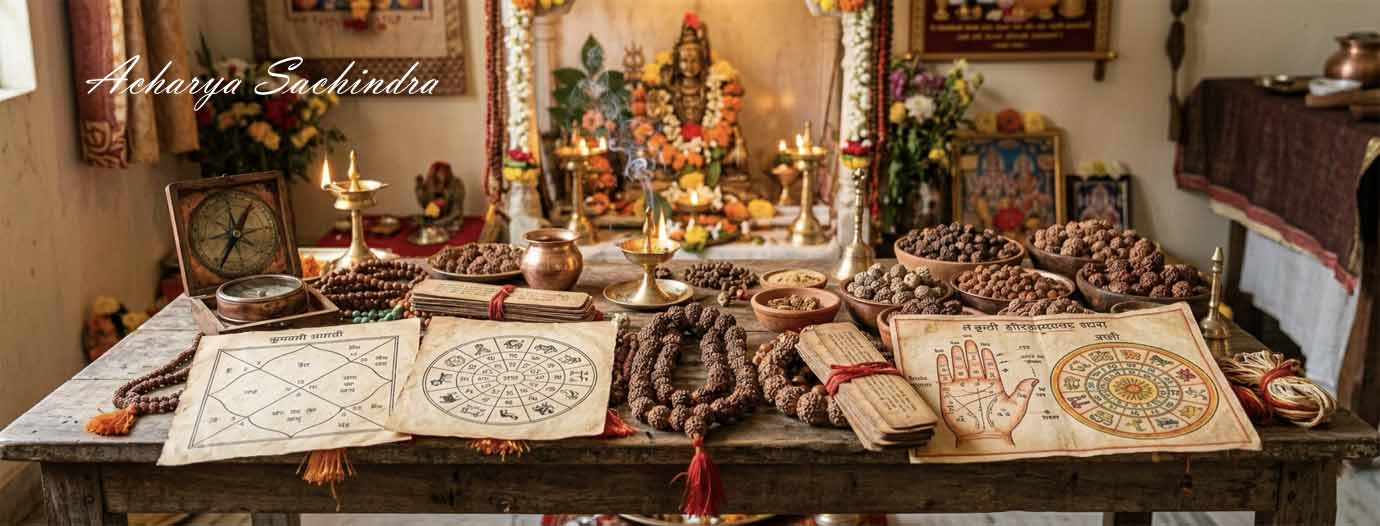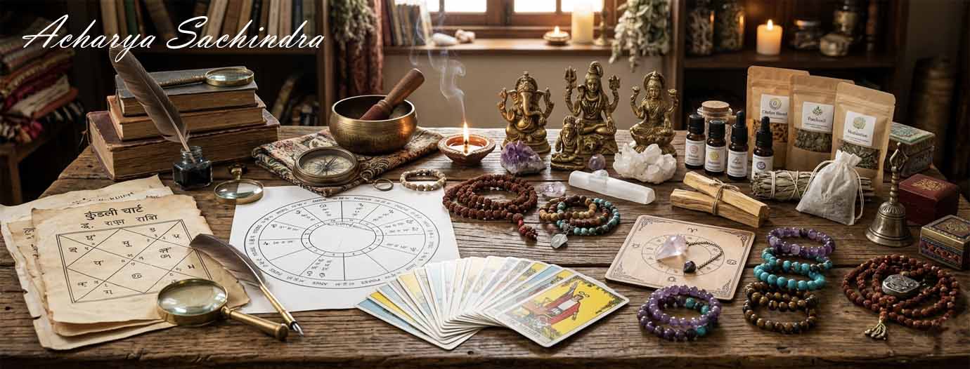 Acharya Sachindra is a highly experienced Vedic astrologer, spiritual consultant, and Tantra practitioner with more than two decades of deep study and practical experience. वे ज्योतिष, वास्तु और तांत्रिक साधना के माध्यम से जीवन की जटिल समस्याओं का सटीक विश्लेषण और प्रभावशाली समाधान प्रदान करते हैं। Marriage, career, financial issues, negative energies और unseen obstacles जैसे विषयों में उनकी विशेष expertise है। उनका मार्गदर्शन केवल भविष्यवाणी तक सीमित नहीं है, बल्कि व्यक्ति के जीवन में clarity, protection और success लाने पर केंद्रित होता है। उनकी कार्यशैली ethical, result-oriented और प्रामाणिक आध्यात्मिक परंपराओं पर आधारित है।